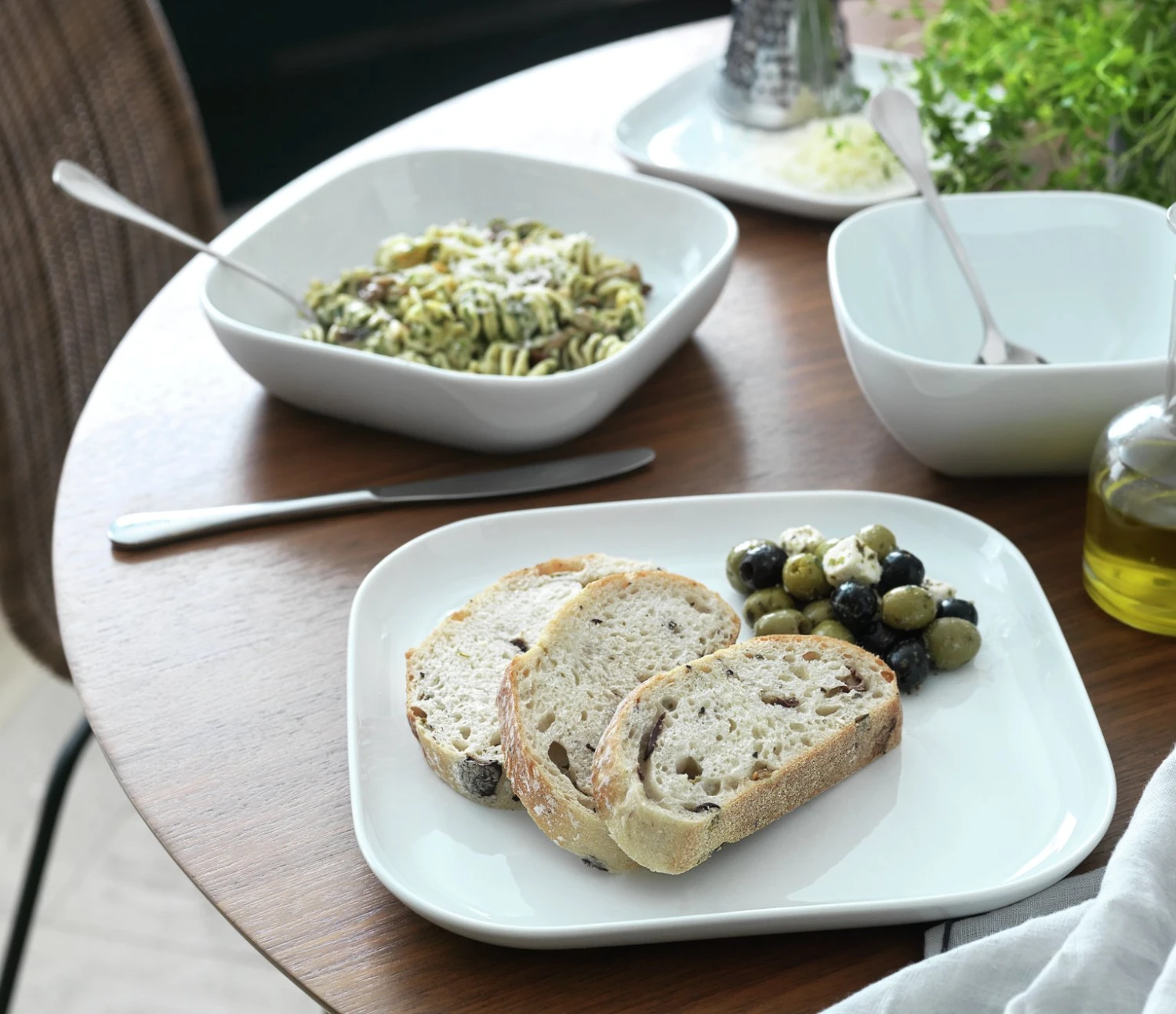 It's hip to be square. Just take a look at Rico, a 12 piece white dining set with serious style. Crafted in porcelain, Rico gives every mealtime a crisp, contemporary feel. When you're finished tucking in, you can pop the bowls, side plates and dinner plates straight in the dishwasher. It's edgy meets practical.