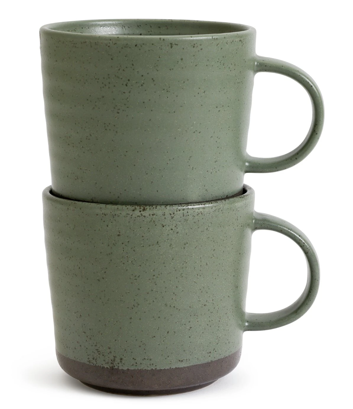 4 soothing cuppas coming right up. Our set of 4 sage mugs have a tactile yet subtle ripple texture. The contrasting dipped effect at the base adds to the calm modern design. In speckled stoneware, they're a stylish choice. And they're robust enough to stay looking good for years. That's a great start.