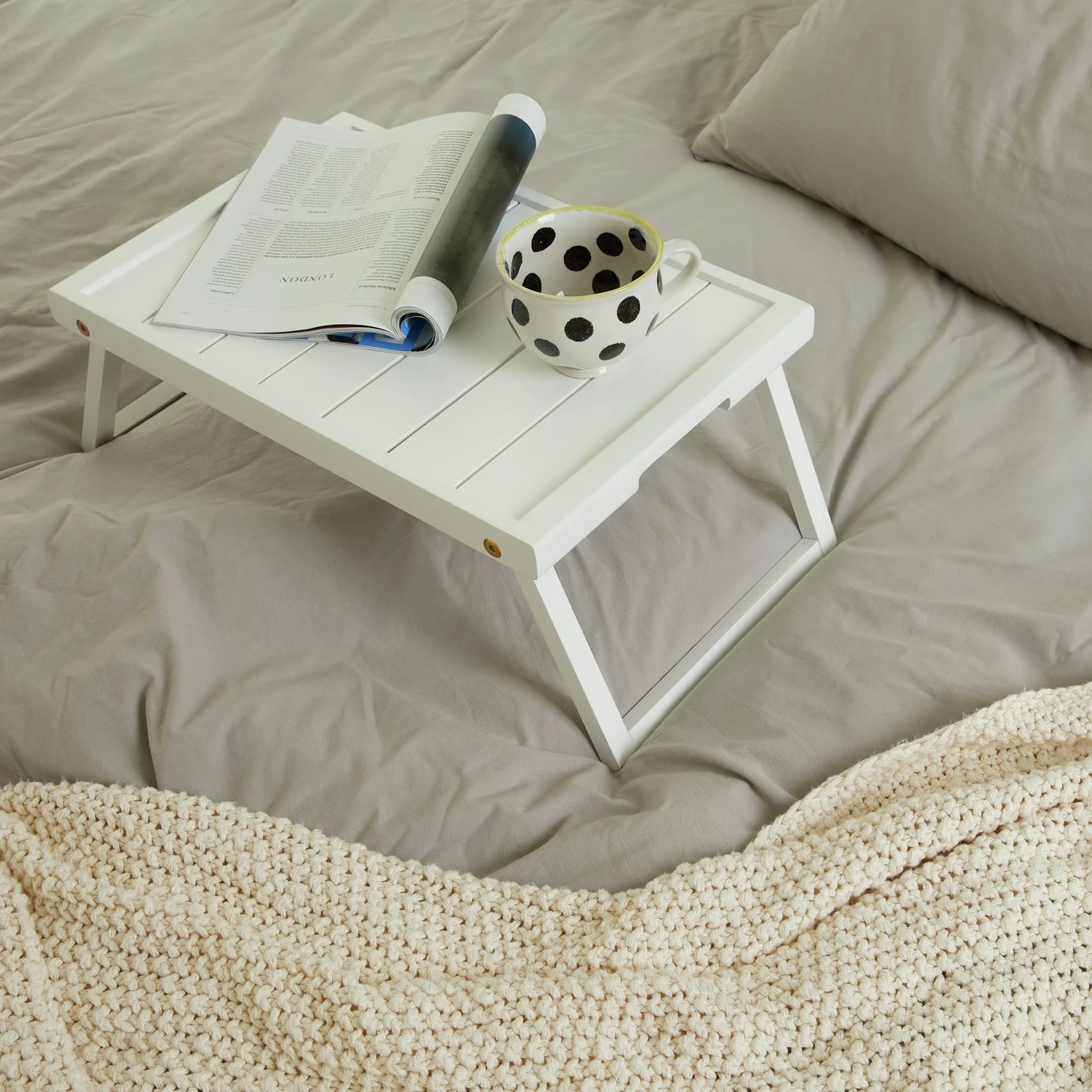 The Tiffany white folding breakfast tray, is perfect for breakfast in bed or TV dinners and folds flat for easy storage.
